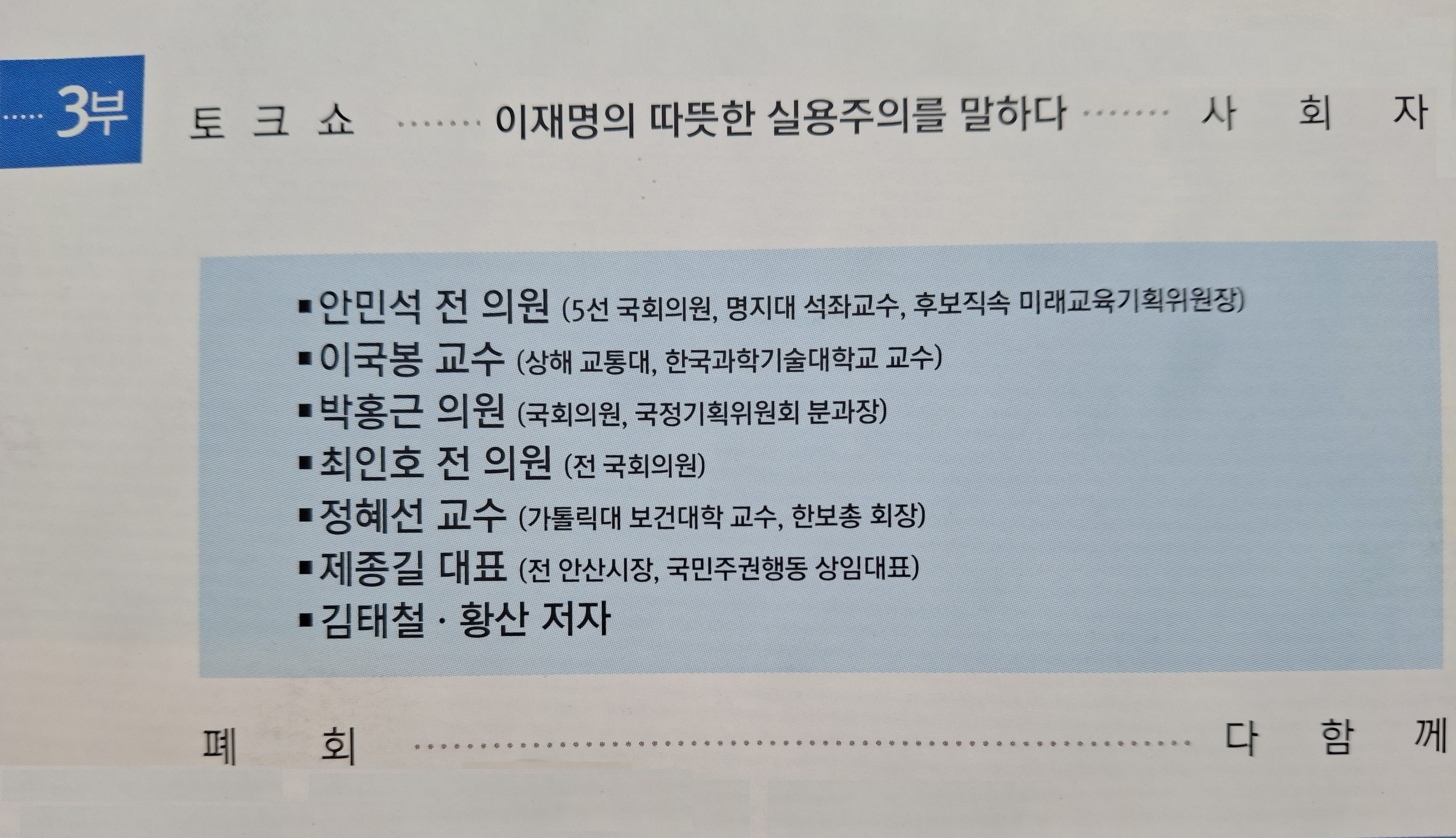 -주제: <이재명의 따뜻한 실용주의>를 말하다 북콘서트 토론회